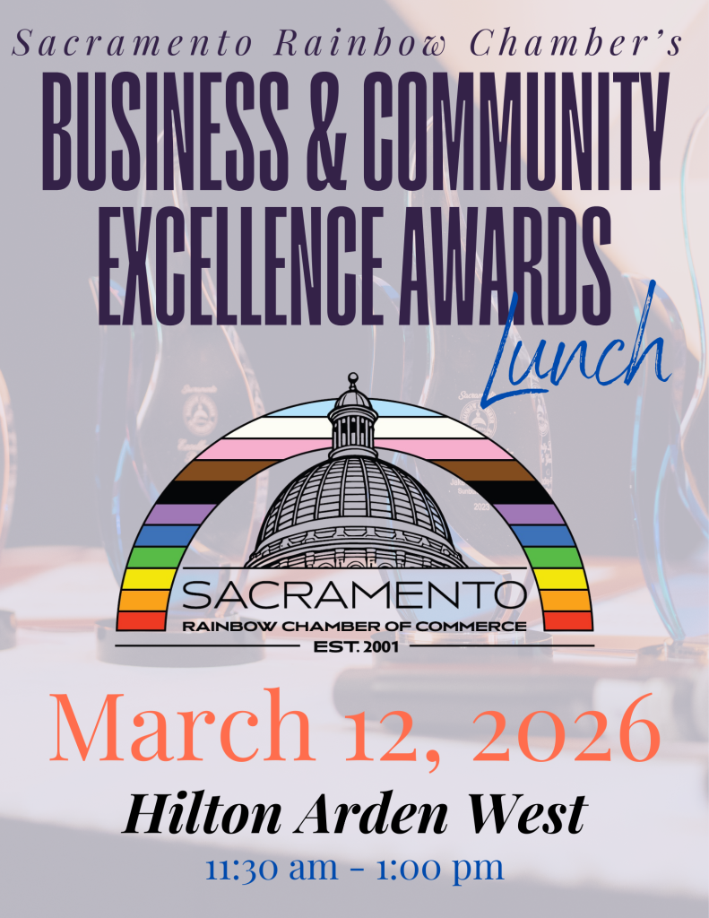 - Awardees will be announced at the Sacramento Rainbow Chamber of Commerce Business & Community Excellence Awards luncheon, date to be announced.
